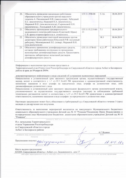 предписание дс Ромашка